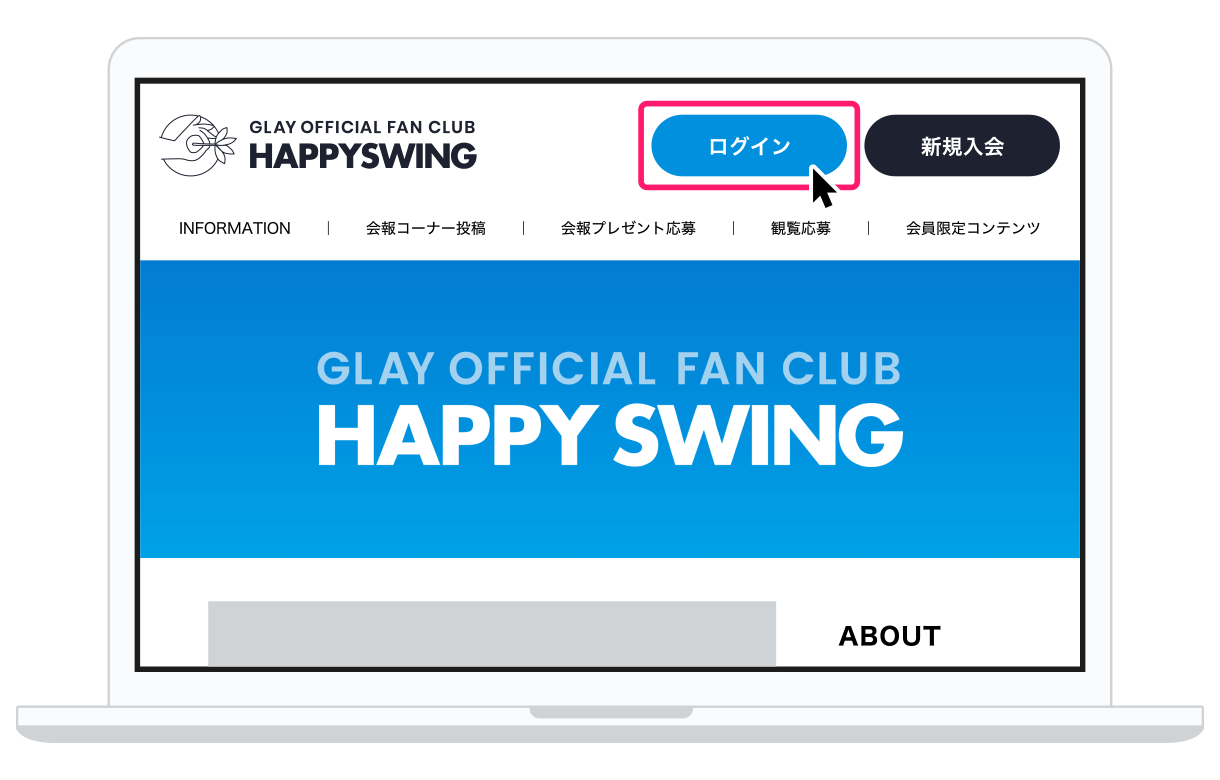 ※HAPPY SWING既存会員様で、ログイン後『新規入会』が表示された場合、「MY PAGE」に正しいID(メールアドレス)でログインできておりません。