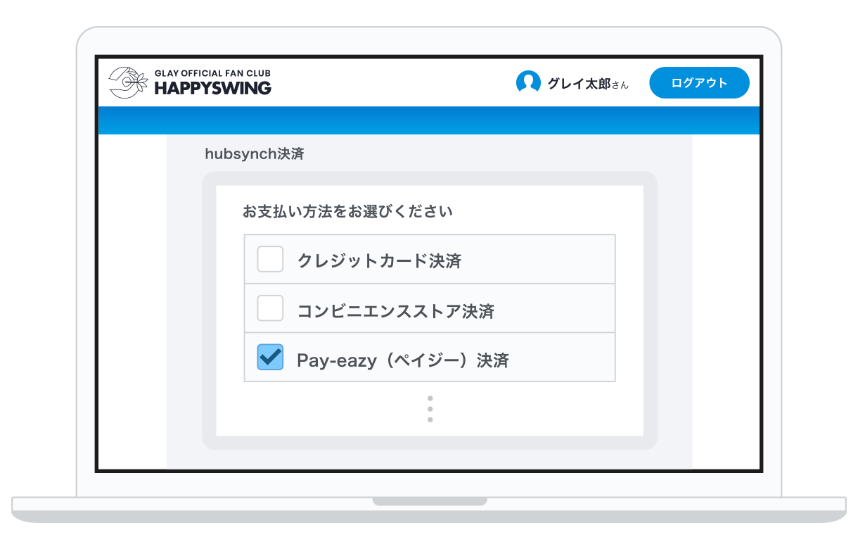 hubsynch決済ページから、お支払い方法を選択して下さい。