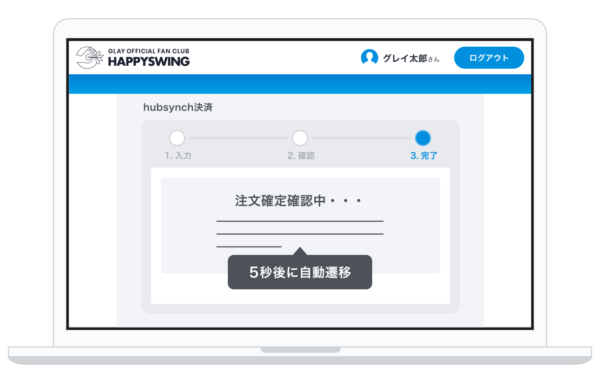 Hubsynchによる、決済のお申し込み受付が完了致しました。5秒ほどで自動的にこちらのページから移動します。