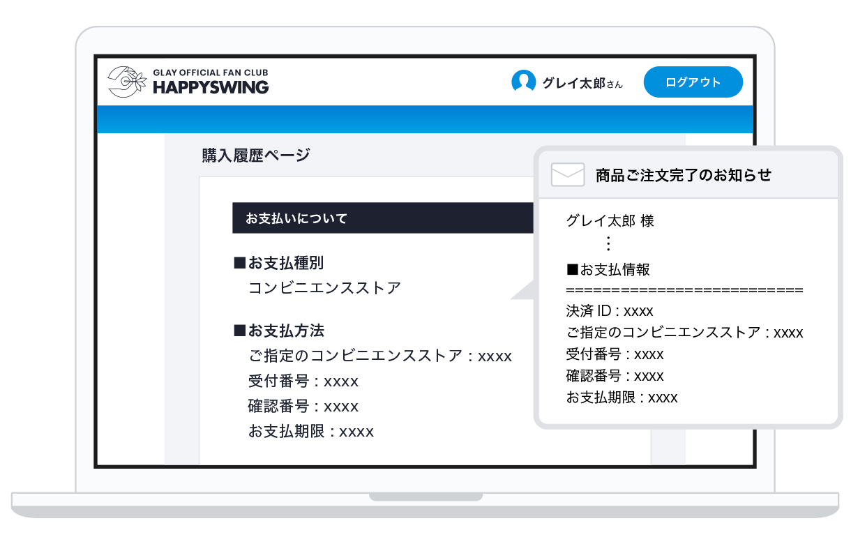 ご登録頂いたメールアドレス宛に決済手続きの成否とともに、お申し込み内容の詳細をお知らせ致します。
