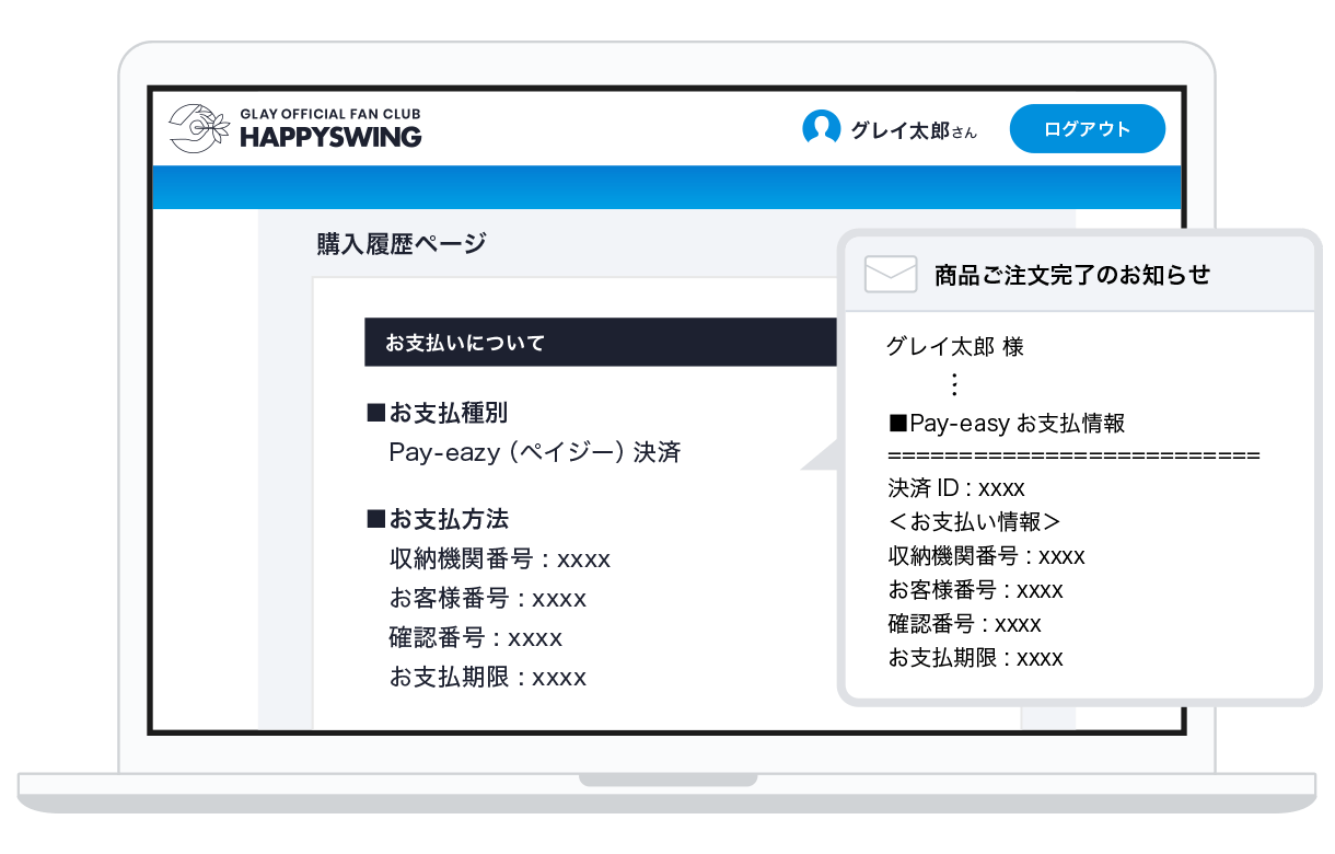 ※メールが届かない場合は、「MY PAGE」内サイドメニューの『購入履歴』から、お支払いに必要な情報をご自身でご確認頂けます。